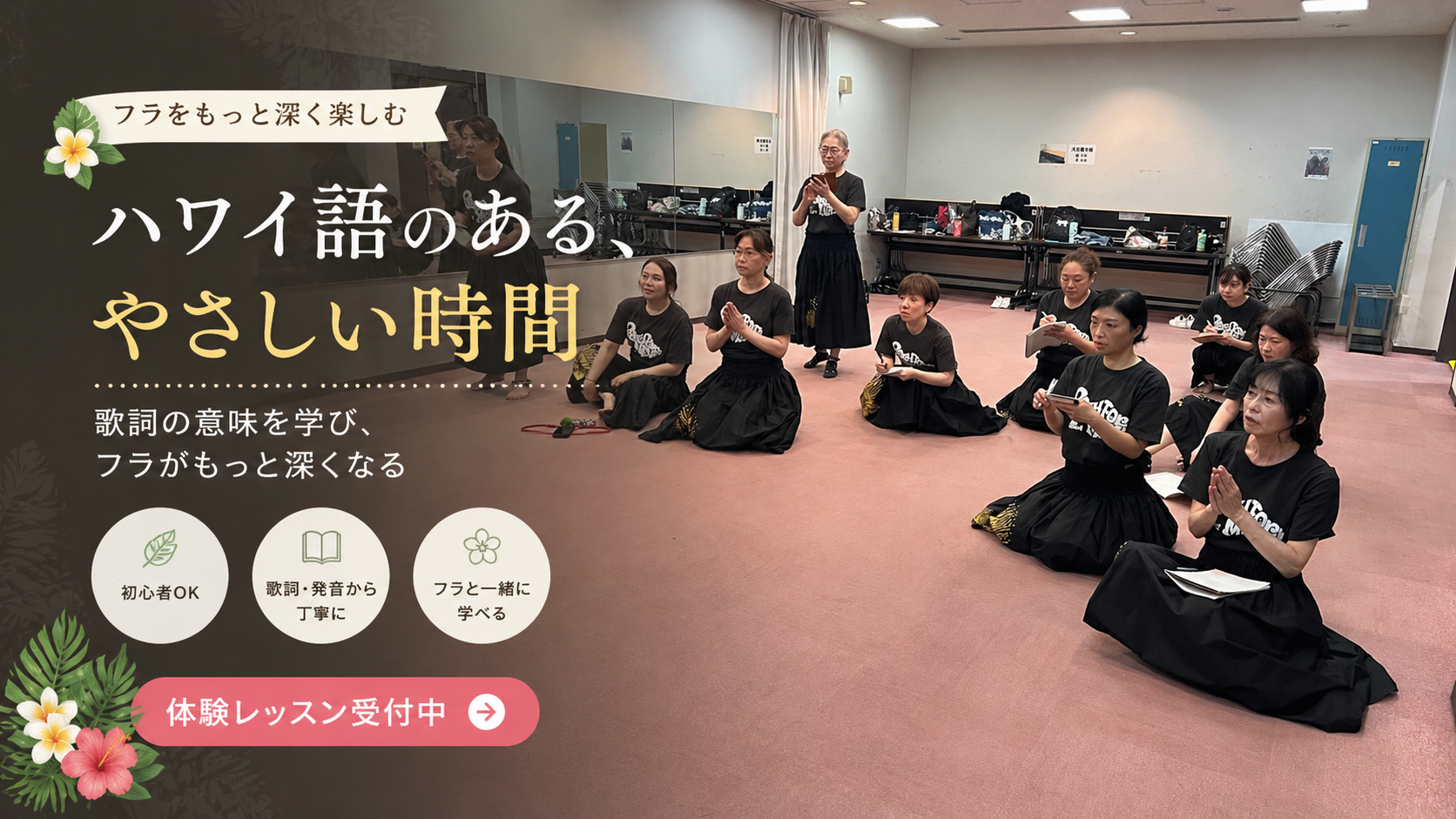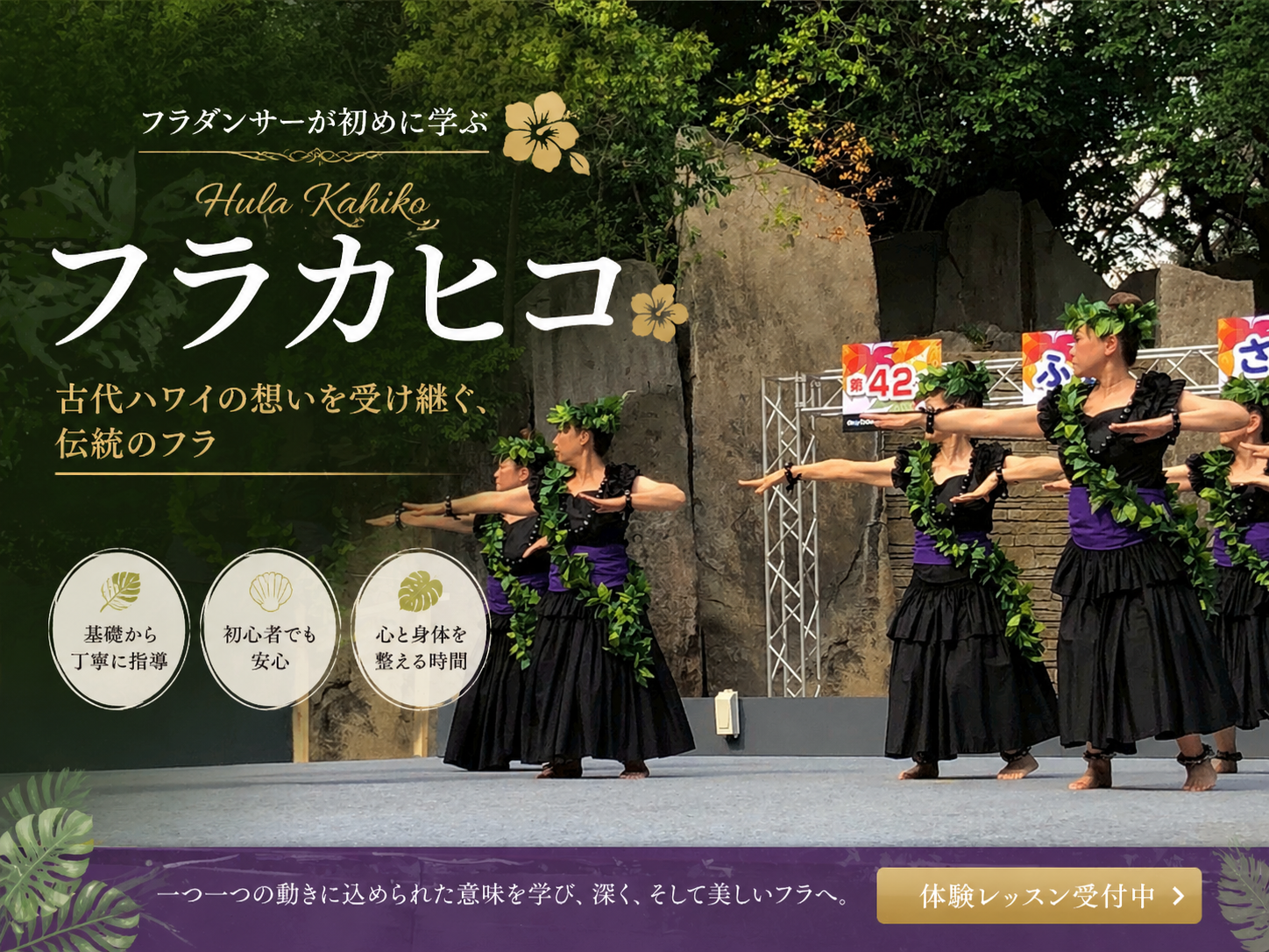 ハワイのダンサーがます始めに学ぶフラカヒコのステップ・ハンドモーションのベーシックを身に付け力強く優雅に美しいフラを踊れるようになります。ALOHAとMAHALOの精神を持ちハワイアンが大切にしてる伝統あるハワイのフラを学ん伝授します