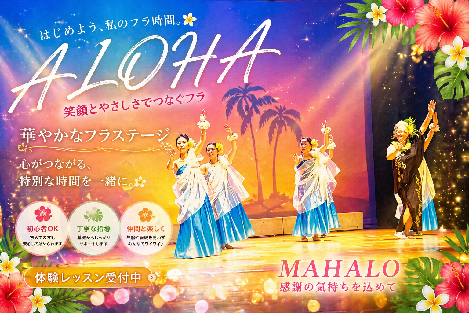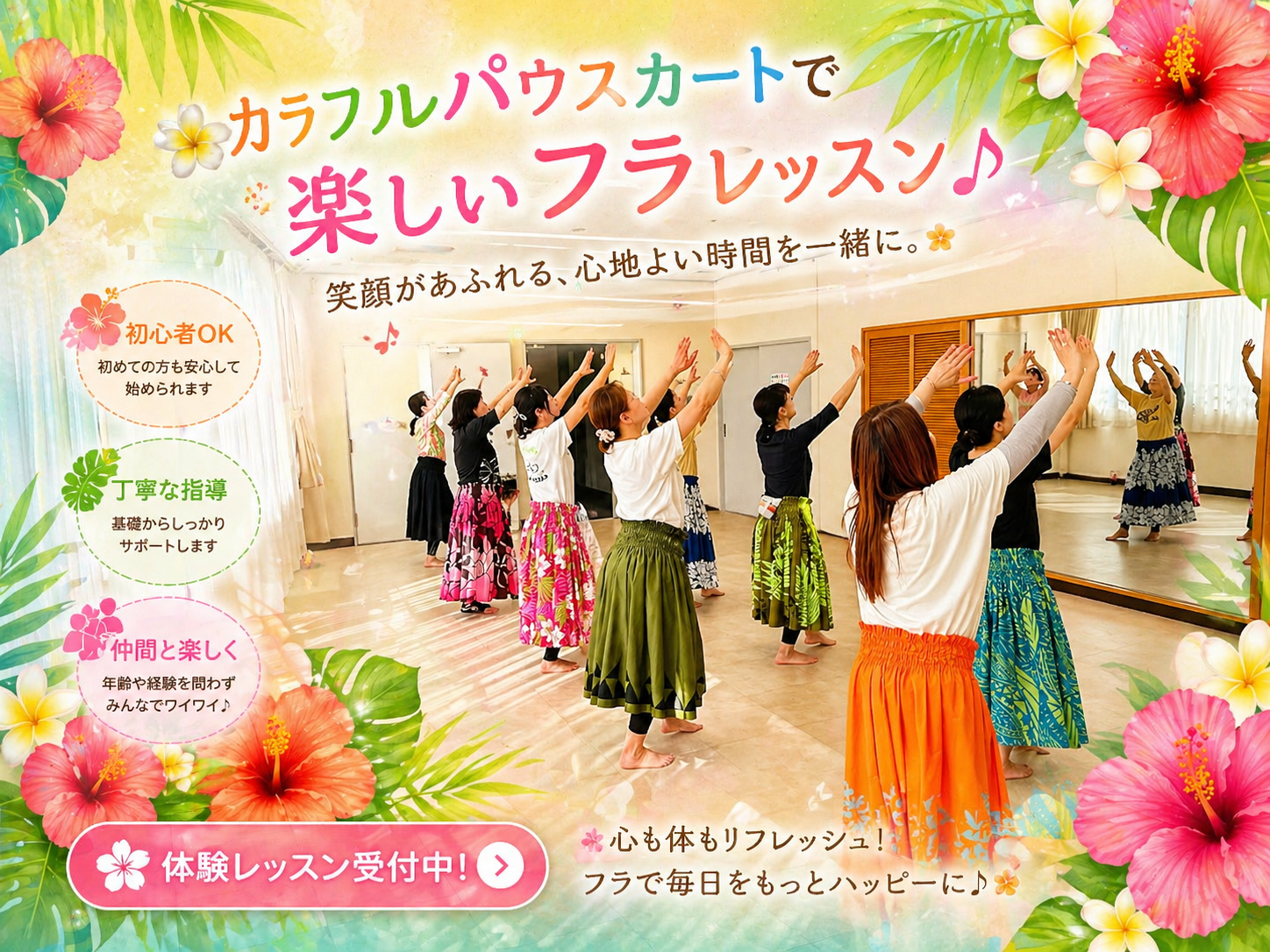 心身ともに癒されながら身体を動かしリフレッシュしましょう♬週末に学ぶ本格フラダンス
